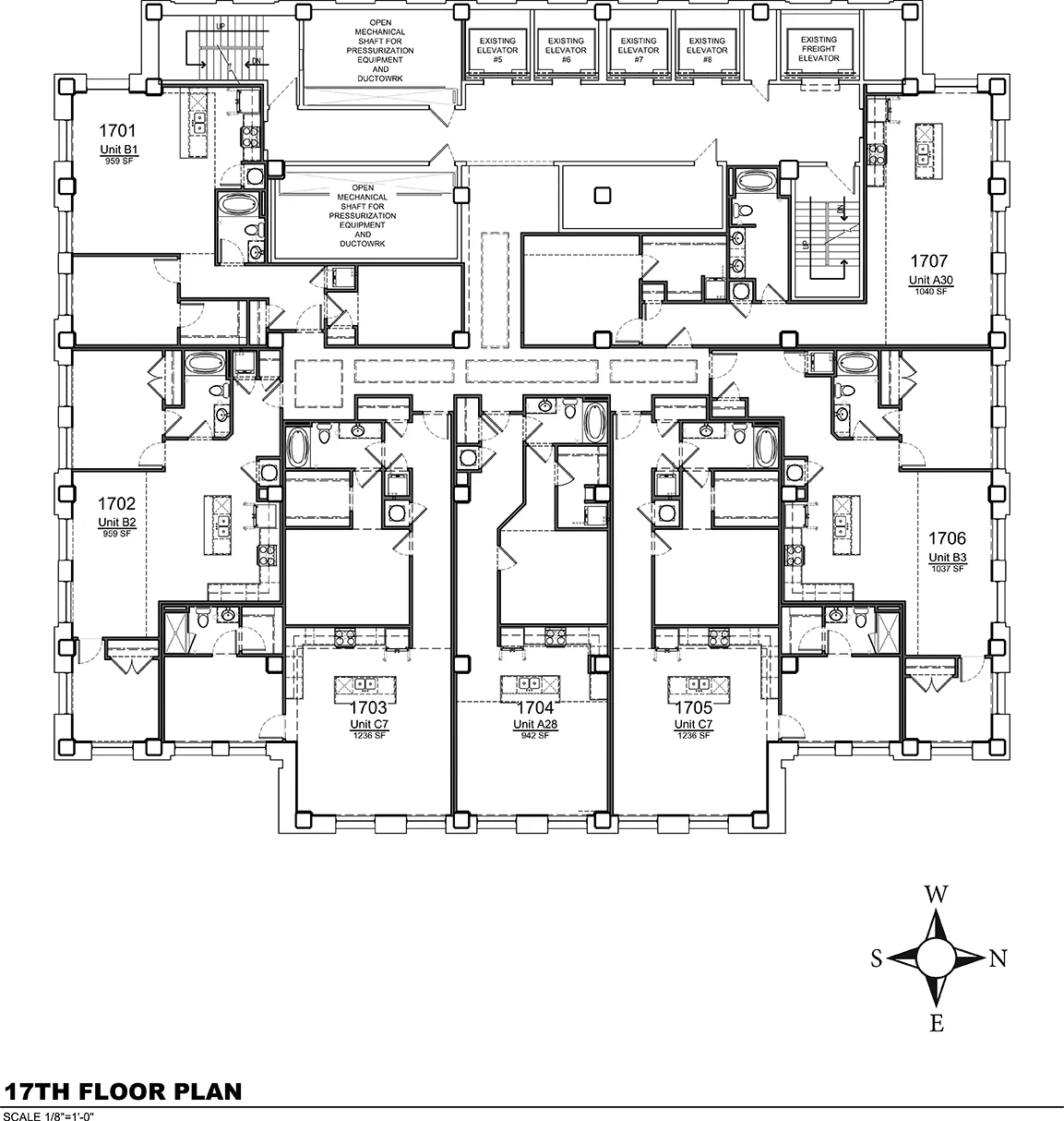 The 17th floor features both 1 bedroom and 2 bedroom units.