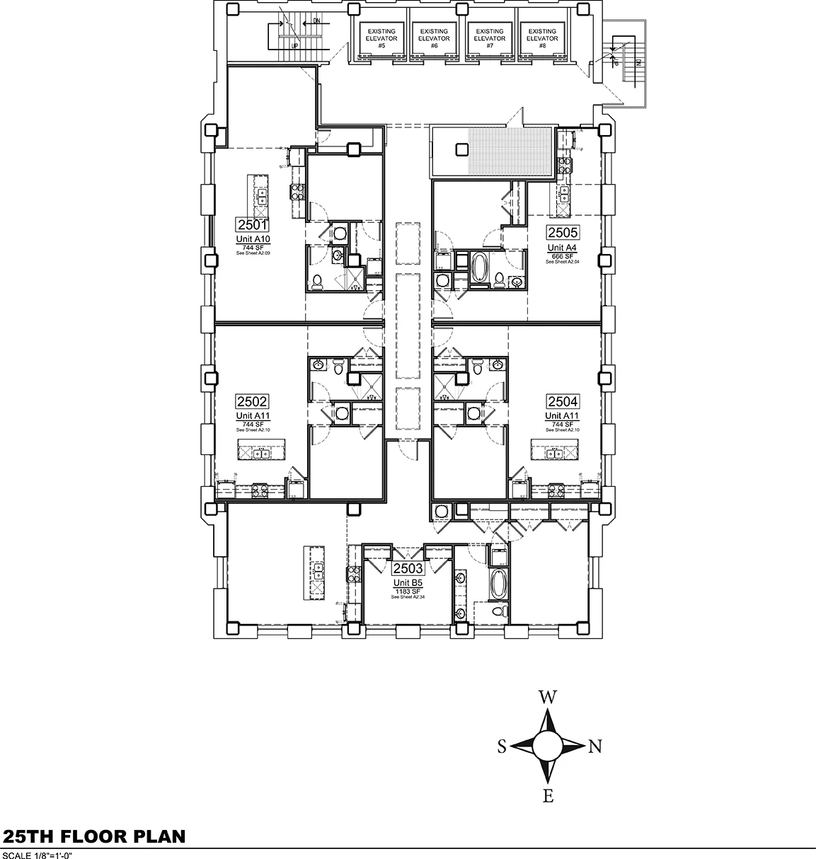 The 25th floor features 1 bedroom and 1 bedroom with a den units.
